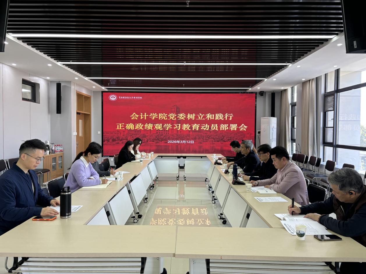 院党委书记周勇介绍《会计学院党委树立和践行正确政绩观学习教育实施方案》并作动员部署讲话。他强调,在“十五五”开局起步的关键节点,开展树立和践行正确政绩观学习教育,是贯彻落实党的二十届四中全会战略部署的必然要求,也是会计学院落实立德树人根本任务、推动高质量发展的现实需要。我们要以此次学习教育为契机,切实把正确政绩观融入办学治院、育人育才全过程各方面。一要提高政治站位,深刻把握正确政绩观的核心要义,坚持为党育人、为国育才,坚持实事求是、求真务实,强化为民造福价值导向;二要聚焦重点任务,找准实践路径,在人才培养上求实效、学科建设上谋长远、服务社会上显担当,以实干实绩践行正确政绩观;三要强化责任落实,压实党委主体责任、书记第一责任人责任和班子成员“一岗双责”,坚持学查改一体推进,扎实做好各项工作,努力创造经得起实践、人民、历史检验的实绩。(审核:周勇)