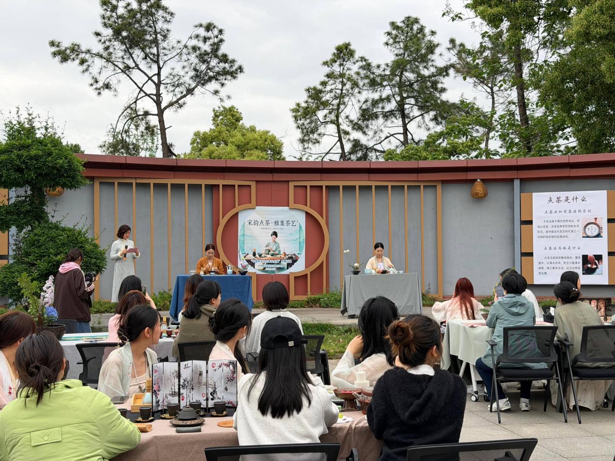 会计学院讯(通讯员:匡静 章曼怡 畅雅莉 陈楠)时维孟夏,茶韵流芳。4月23日下午,会计学院分工会携手学院心理工作站在中国会计史文博馆北广场举办“中国茶文化之宋代点茶”主题活动,以一场风雅之约,赓续中华优秀传统文化根脉。学院师生齐聚一堂,以茶为媒、以礼相待、以心相交,于碾茶击拂间感悟千年茶道之美,在品茗论道中共筑文化认同。