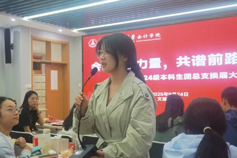 金秋九月,聚力正当时。为系统梳理工作脉络、精准破解现存问题、清晰规划未来发展路径,进一步增强组织凝聚力,9月23日,会计学院2024级本科生团总支换届大会在文瀚楼北408召开。本次大会以“会集青春力量,共谱前路新篇”为主题,由辅导员孙紫微主持。团总支38名成员到会,围绕团队建设、工作部署与发展方向等关键议题展开深入交流,为组织新征程奠定坚实基础。