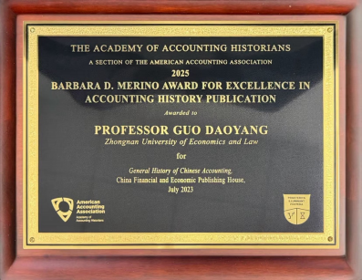 该奖项由全球会计学术权威机构,美国会计学会(AAA)旗下的会计史学家学会(AAH)负责评选,面向全球会计历史研究群体,具有极高的国际公信力。