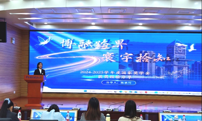 国奖获得者CPAC2301班倪语泽以《心怀热爱,躬身实践赴理想》为主题,讲述了自己如何从总结反思中逆袭的经历。她在提升学业上求知若渴,能力锻炼时笃行不怠,积极向党组织靠拢,热心服务同学,并“以青春之力破产业困局”,通过专业知识为家乡非遗带来新生,启迪广大学子将自我的学习成长与家乡的繁荣建设相结合,书写新时代大学生的担当有为。