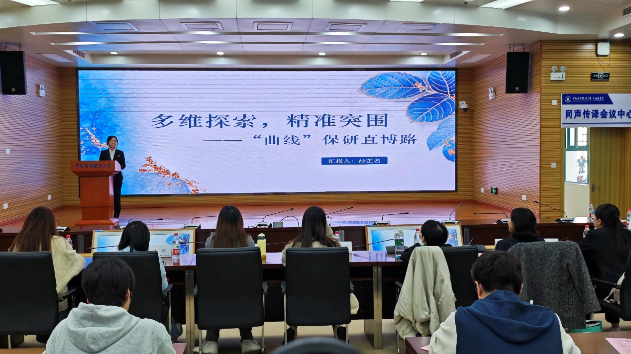 已推免至东南大学直博项目的注会2203班沙芷名以《多维探索,精准突围》为主题,用轻松随和的方式引入话题,讲述了自己如何通过科研潜力和综合发展打破困境。分享了在校园活动中的“广博见闻、综合成长”,和从探索兴趣到坚定方向、精准突围的心路历程。
