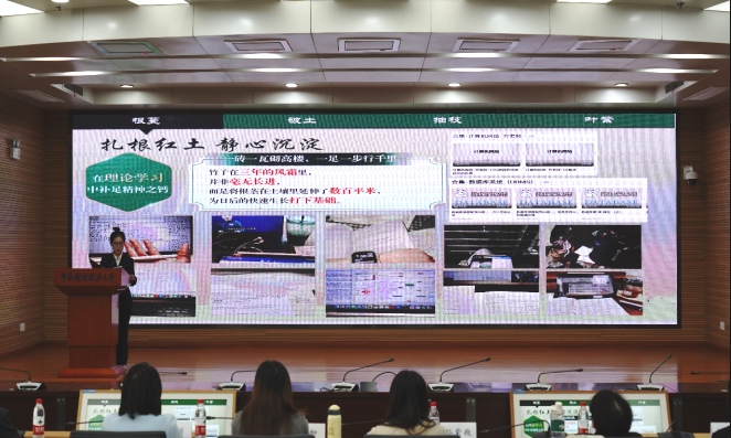 国奖获得者财智(双)2301班郑羽涵以《霜满三载,青竹不败》为主题,自比青竹,从“根蔓、破土、抽枝、叶繁”的脉络,讲述了自己从不断摸索到“深根基础,躬行实践”的进步之路,和勇于跳出舒适区,面对挑战,最终“势如破竹”,实现自我理想的历程。