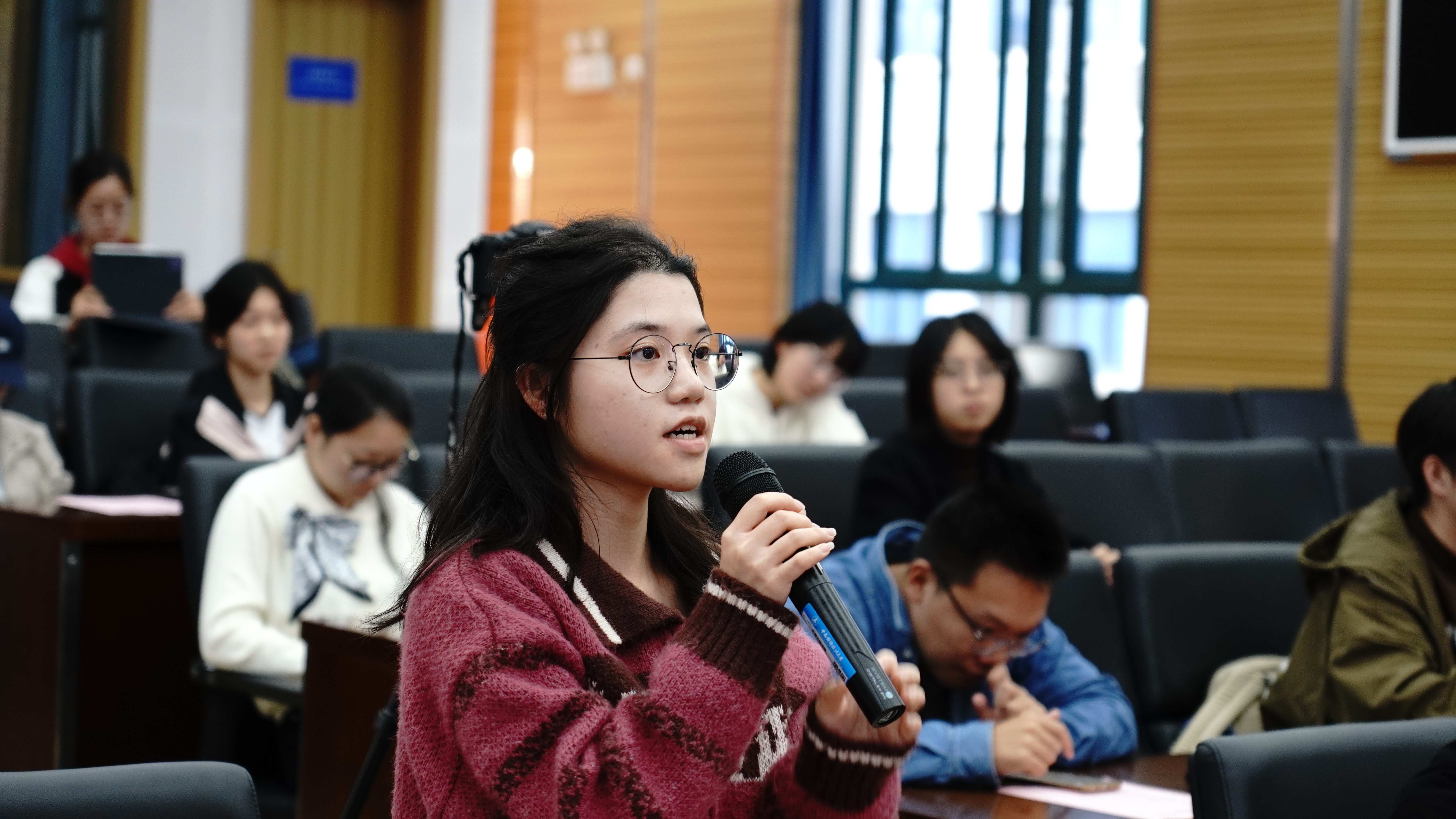 演讲结束后,在互动交流环节中,现场同学们积极参与,就时间分配、心态调整、科研选题、打破信息差等方面提出问题,分享者们热心地回应解答,毫无保留地分享有效建议。