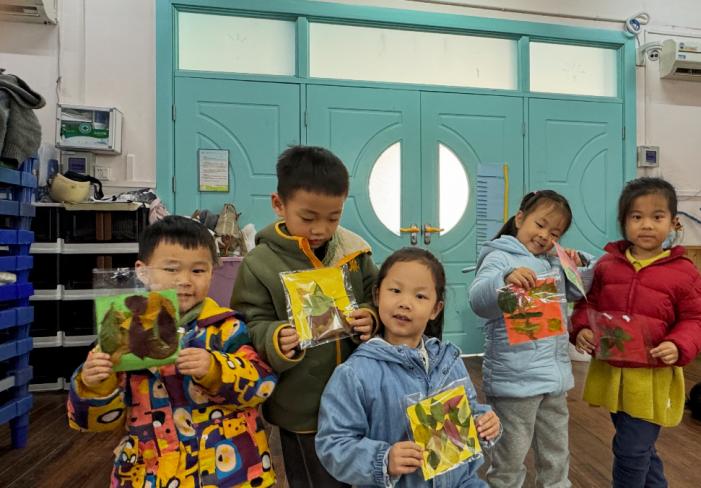当一幅幅树叶拼贴画完成时,孩子们的脸上都绽放出灿烂的笑容。他们兴奋地举起自己的作品互相展示,教室里顿时变成了一个小小的艺术展览馆。在志愿者的引导下,孩子们还将完成的作品用透明胶袋精心封存,让这份秋日的记忆得以长久保存。