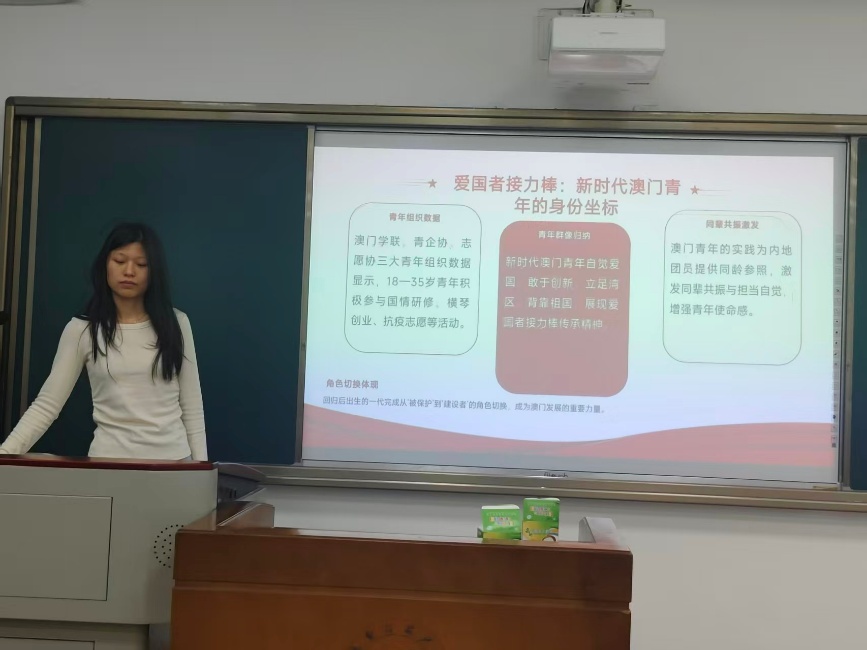 此次主题团日活动以澳门发展为切入点,将历史教育、制度教育与爱国教育有机融合,既让同学们回顾了“一国两制”的成功实践,也激发了青年一代的使命担当,为培养有理想、敢担当、能吃苦、肯奋斗的新时代青年筑牢了思想根基。