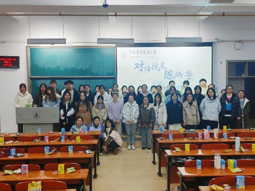 本网讯(通讯员 丁宁 杨柳 摄影 李瑾炫)12月19日晚,由会计学院学习发展中心主办,中南职梦辅导员工作室、会计学院学生会协办,会计学院2023级与“会楫流星”社会实践队承办的第三期“‘会’成长‘计’发展”系列活动——“校友寻访”访谈视频观影活动在南附203顺利举行。本期活动以“感悟专业坚守与精神涵养”为主题,带领同学们走近1983级校友陈炳华师兄的稳健人生,活动吸引了众多本科生参与,现场氛围温暖而沉浸。