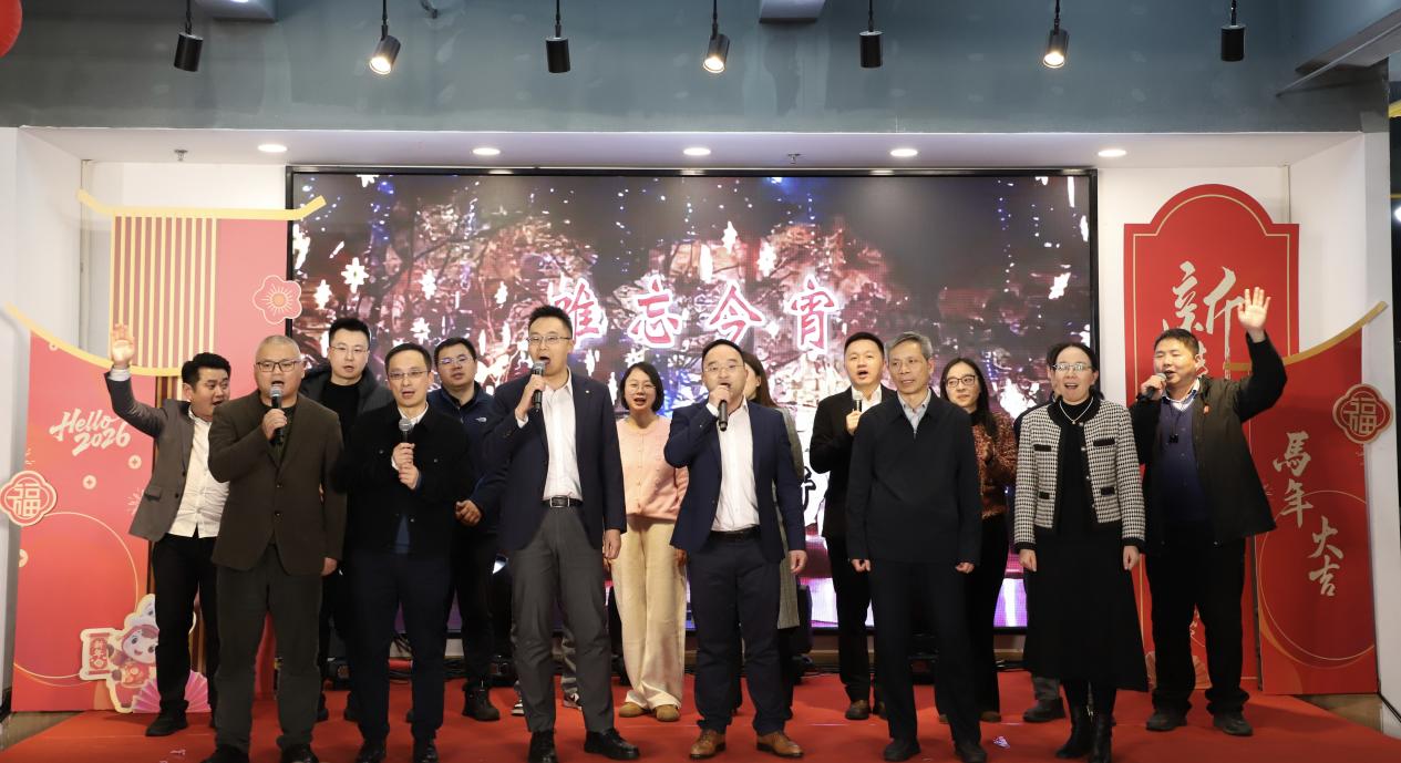 活动高潮,张校长带领三院领导领唱《朋友》与《难忘今宵》,全场教职工齐声高歌,熟悉的旋律回荡在现场,深情歌声汇聚成温暖的海洋,将晚会气氛推向最高潮,也为本次联欢会画上了圆满而富有凝聚力的句号。