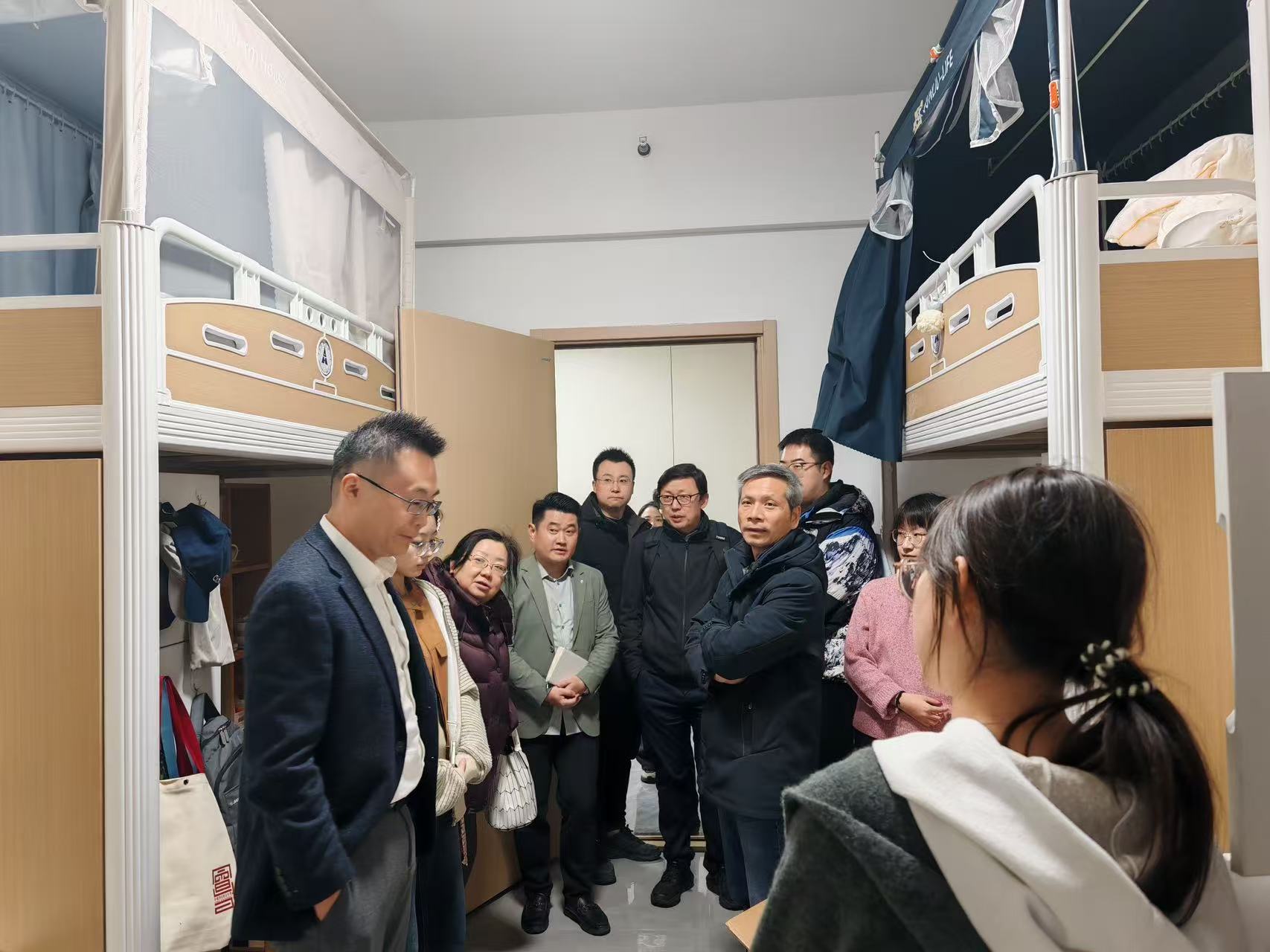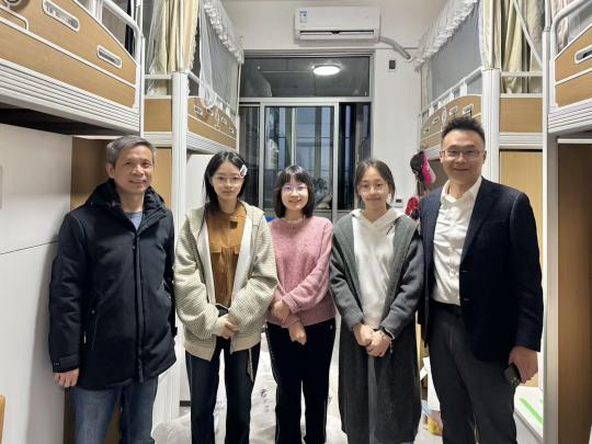 (通讯员 孙紫微)新学期伊始,万象更新。为深入了解会计学院学生返校情况及思想动态,实地察看新宿舍入住体验,传递学院的关怀与期望,2月28日晚,校党委常委、副校长兼会计学院院长张琦、会计学院党委书记周勇率会计学院领导班子及本科生辅导员,深入临湖6栋、临湖7栋等学生宿舍楼走访慰问返校学子。