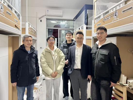 在临湖宿舍区,张校长一行实地察看了宿舍设施、环境卫生及安全情况,并与同学们亲切交流,关切询问假期生活、新宿舍适应情况及新学期规划,倾听同学们的心声与需求。同学们表示,新宿舍条件优越,生活便利,言语间洋溢着对“新家”的喜爱与对学校关怀的感激。