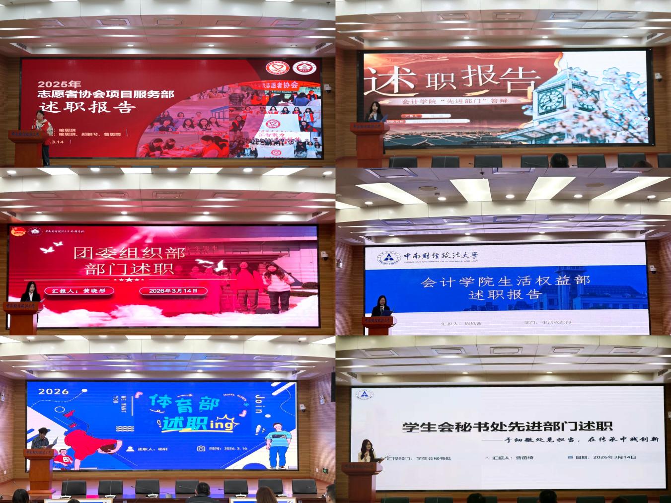 此次述职大会,既是对过往工作的全面总结与复盘,也是对未来使命的清晰展望与动员。相信会计学院团学志全体成员将以此次大会为新起点,不忘初心、牢记使命,以更加饱满的热情、更加务实的作风、更加扎实的行动,服务同学、奉献学院、锤炼自我,在服务与奉献中书写青春华章,为学院学生工作高质量发展贡献青春力量!