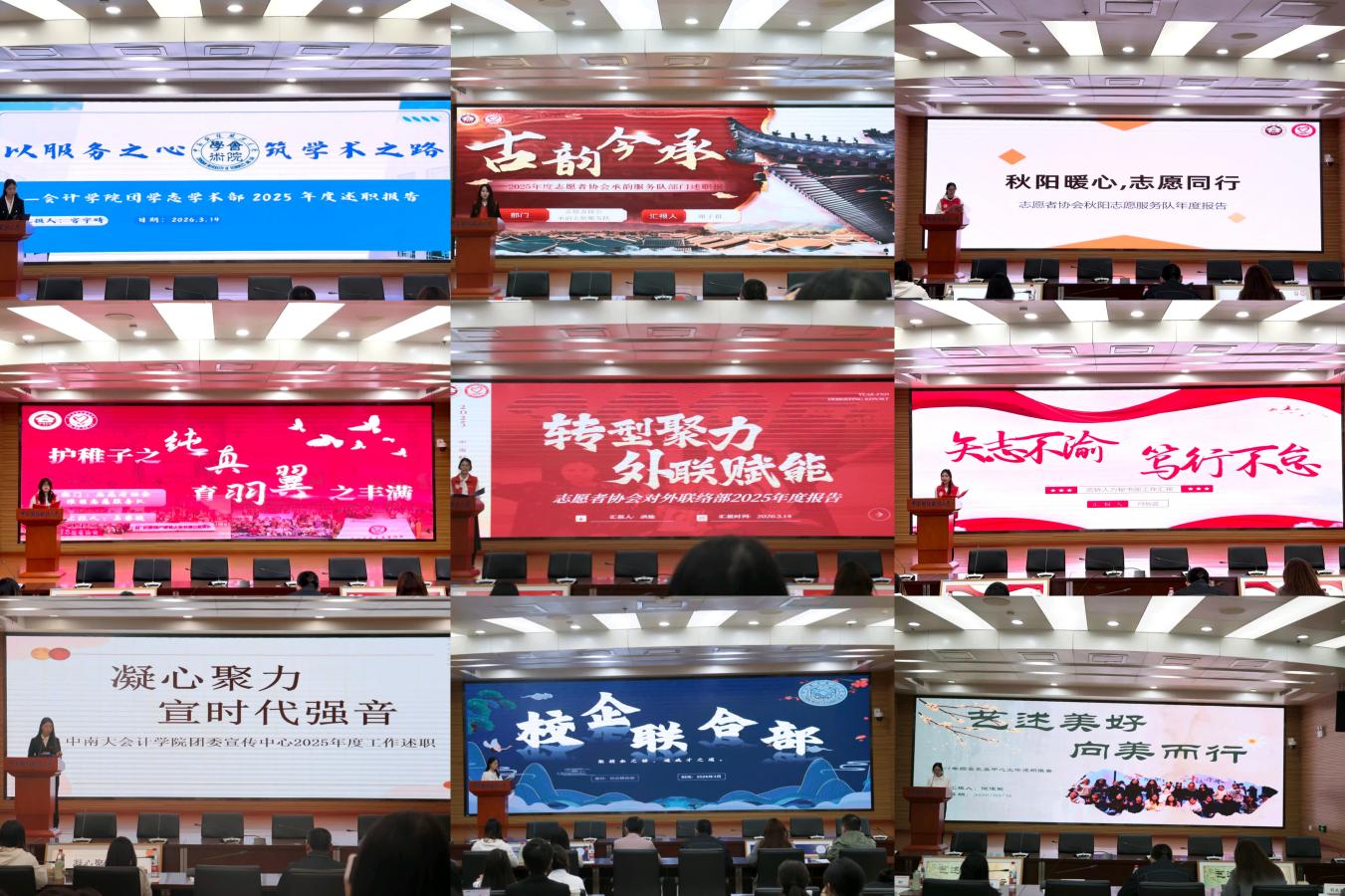 新闻网讯(学生通讯员 赵悦淇)3月14日,会计学院第二十六届团学志述职大会在南湖校区文澴楼同声传译会议室正式举行。本次大会分为“先进组织述职答辩”及“先进个人述职答辩”两个环节,旨在系统总结团学志年度工作成果,搭建跨部门经验交流平台,推动学院团学工作高质量发展。会计学院党委副书记孟曰,学办主任陈楠,团委副书记黎玥,辅导员姚健、杨柳、胡牧孜、孙紫微及团学志骨干成员线下参与此次大会,团委书记赵达骋线上全程参与。