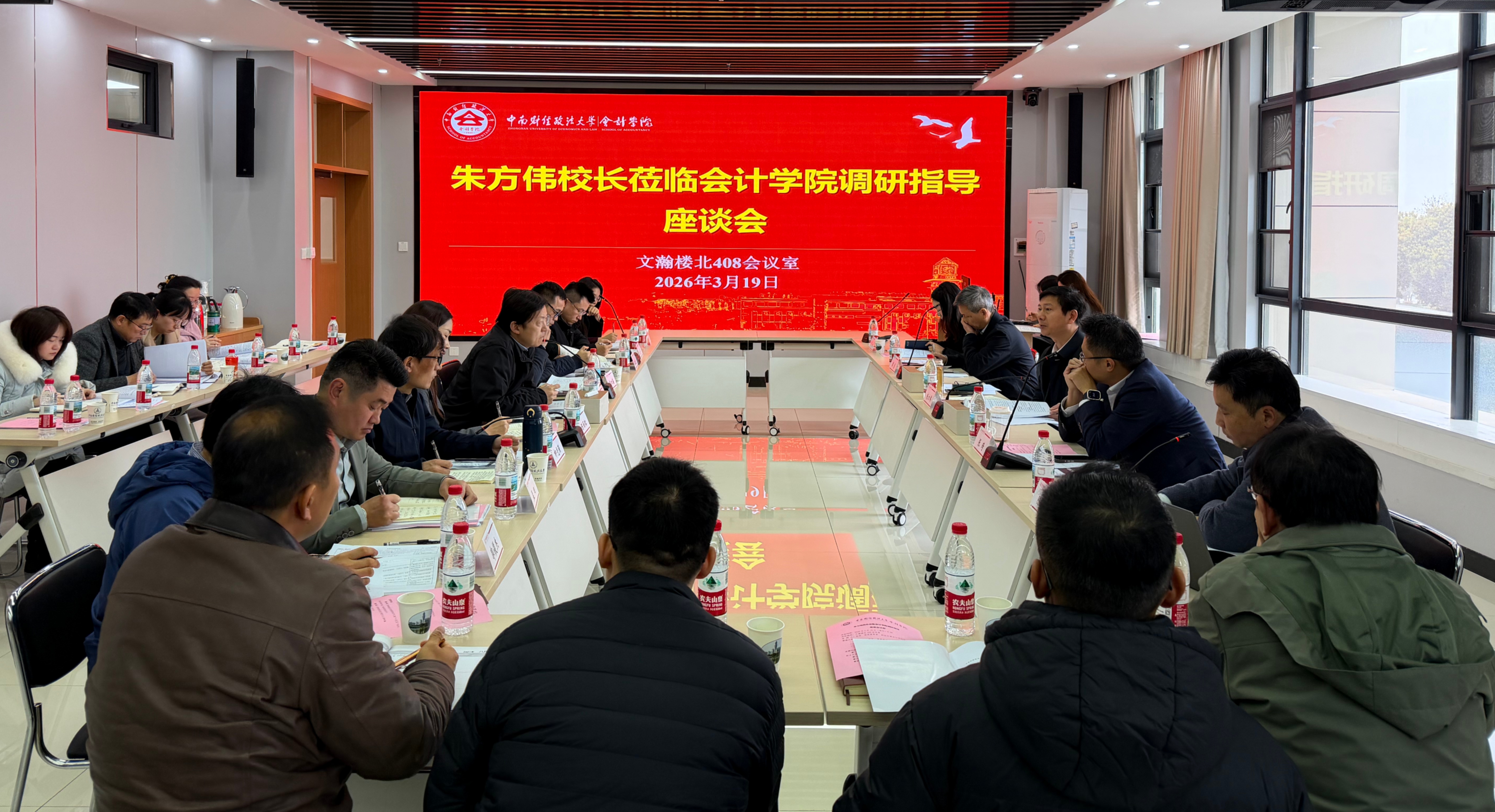 本网讯(通讯员 黎玥 赵侃)3月19日上午,校长、党委副书记朱方伟莅临会计学院召开2026年度重点工作对话会,就学院“十五五”规划、自下而上综合改革、年度工作要点等定向施策、靶向指导,党校办副主任覃虹陪同。校党委常委、副校长兼会计学院院长张琦,院党政领导班子全体成员,各系、各学科领域与各科室负责人参加。
