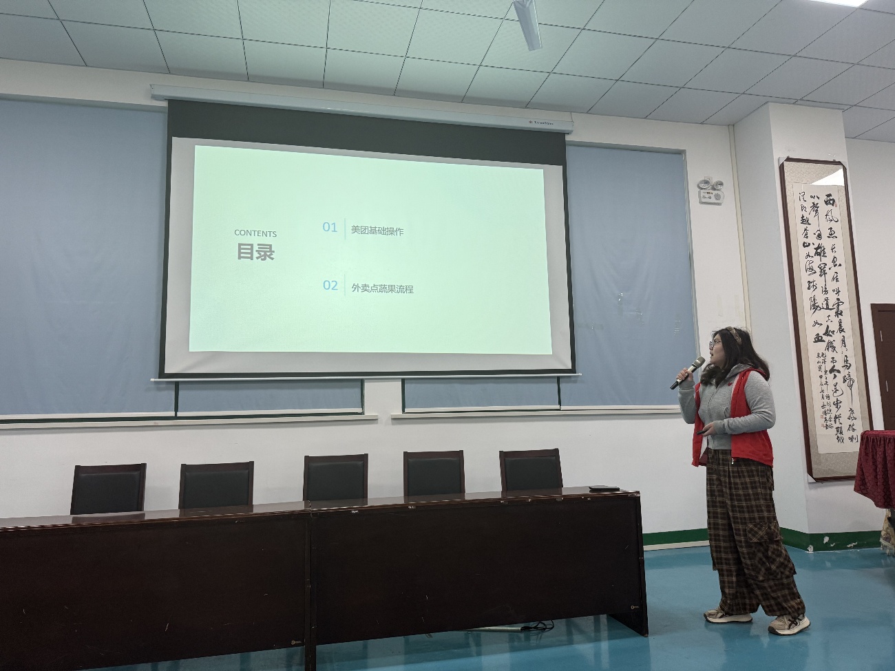 紧接着,志愿者正式开始教学,重点围绕美团买菜的基础操作展开讲解。志愿者通过清晰易懂的演示,一步步讲解软件使用流程,从进入小程序、挑选新鲜菜品、加入购物车,到提交订单、线上支付、查看配送时间,每一步都讲得既细致又耐心。考虑到老人们日常使用手机的习惯,志愿者还放慢语速、反复示范,重点提醒容易操作失误的地方。老人们纷纷拿出手机,跟着步骤慢慢尝试,认真学习、积极实践,现场学习氛围十分浓厚。