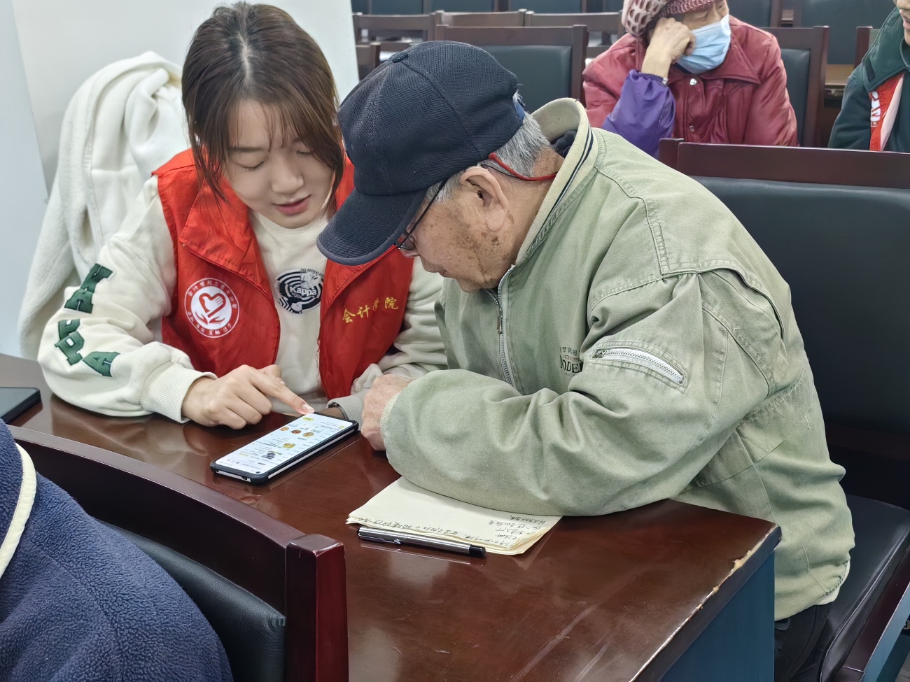 新闻网讯(学生通讯员 李佳琪 师宇)为协助老人跨越数字时代鸿沟,便捷生活,弘扬敬老爱老的中华优秀传统美德,3月20日,中南财经政法大学会计学院志愿者协会携手七〇一社区开展“智享夕阳红,‘e’路暖相伴”主题活动。志愿者们手把手教老人使用美团买菜,帮助大家熟悉线上选购蔬菜、下单、查看配送进度等操作,让老人足不出户就能轻松买到新鲜食材,切实感受数字化带来的生活便利。