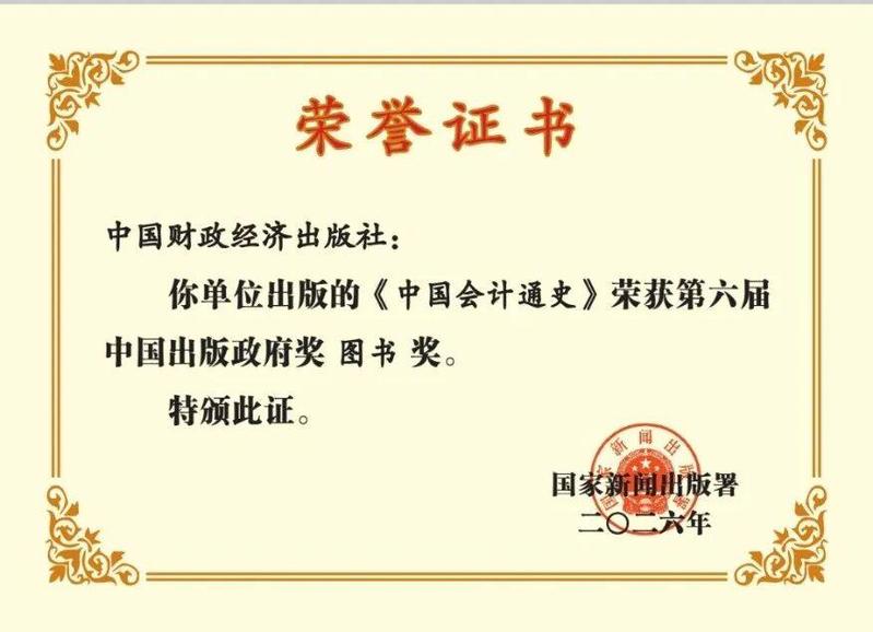 中国出版政府奖是我国新闻出版领域的最高奖项,每三年评选一次。本届全国仅设60个图书奖席位,《中国会计通史》能够脱颖而出,充分彰显了其在学术创新、出版质量与文化传承维度的卓越价值。