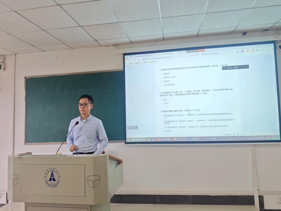 随后,吕敏康副院长介绍了改革框架与实施路径,重点解析了“懂业务、知技术、会融通、专财务”的高端会计人才培养目标。他强调,本次改革以产业实践需求为锚,以培养方向建设为犁,推动专业学位课程体系和指导体系的改革,现场发放的问卷并非形式化调研,而是改革决策的核心依据。问卷围绕报考动因、融通化策略、方向班建设、课程改革、就业意向等五大维度设计,所有反馈严格匿名处理,直接用于优化培养方案,确保改革精准回应学生诉求与产业变革趋势。