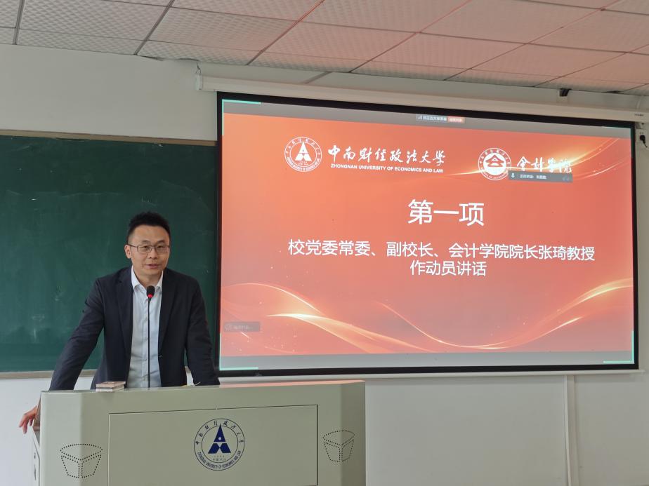 张校长在动员讲话中指出,人工智能技术正深刻重塑会计行业生态,传统核算岗位面临转型压力,课程体系与人才培养模式亟需迭代升级。面向未来,会计教育应聚焦四个维度:一是推进融通化,发挥财经与政法学科交叉优势,提升学生解决复杂商业问题的综合能力;二是深化数智化,强化AI工具应用与数据思维训练;三是拓展国际化,强化商业逻辑与全球视野;四是回归业务本质,从“账房先生”向“价值创造者”转型。他勉励同学们主动识变、应变、求变,成长为适应未来商业环境的高层次复合型财务人才。